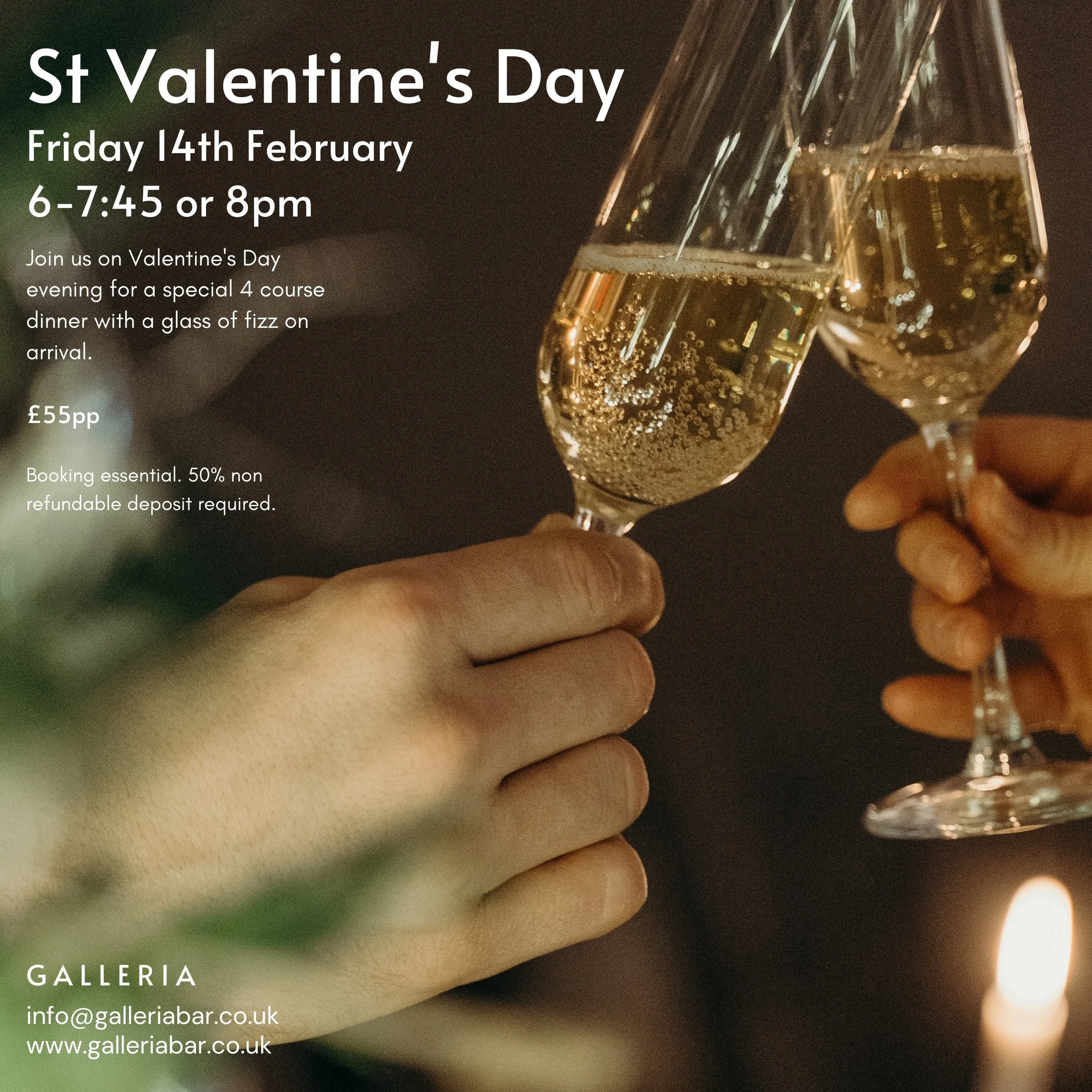 Join us for a special St Valentine’s Day dinner with 4 courses and a glass of fizz on arrival. Bring your loved one or a friend, we will be offering 2 sittings only. 6-7:45pm or 8pm. See the full menu below.